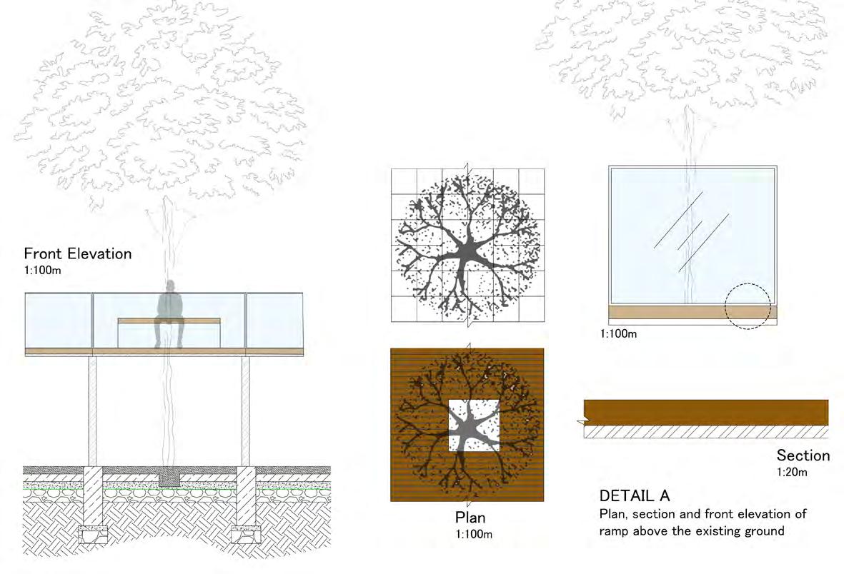 Ramp with tree avenue running on the central axis 6m×200mm×100mm placed at 25mm gaps