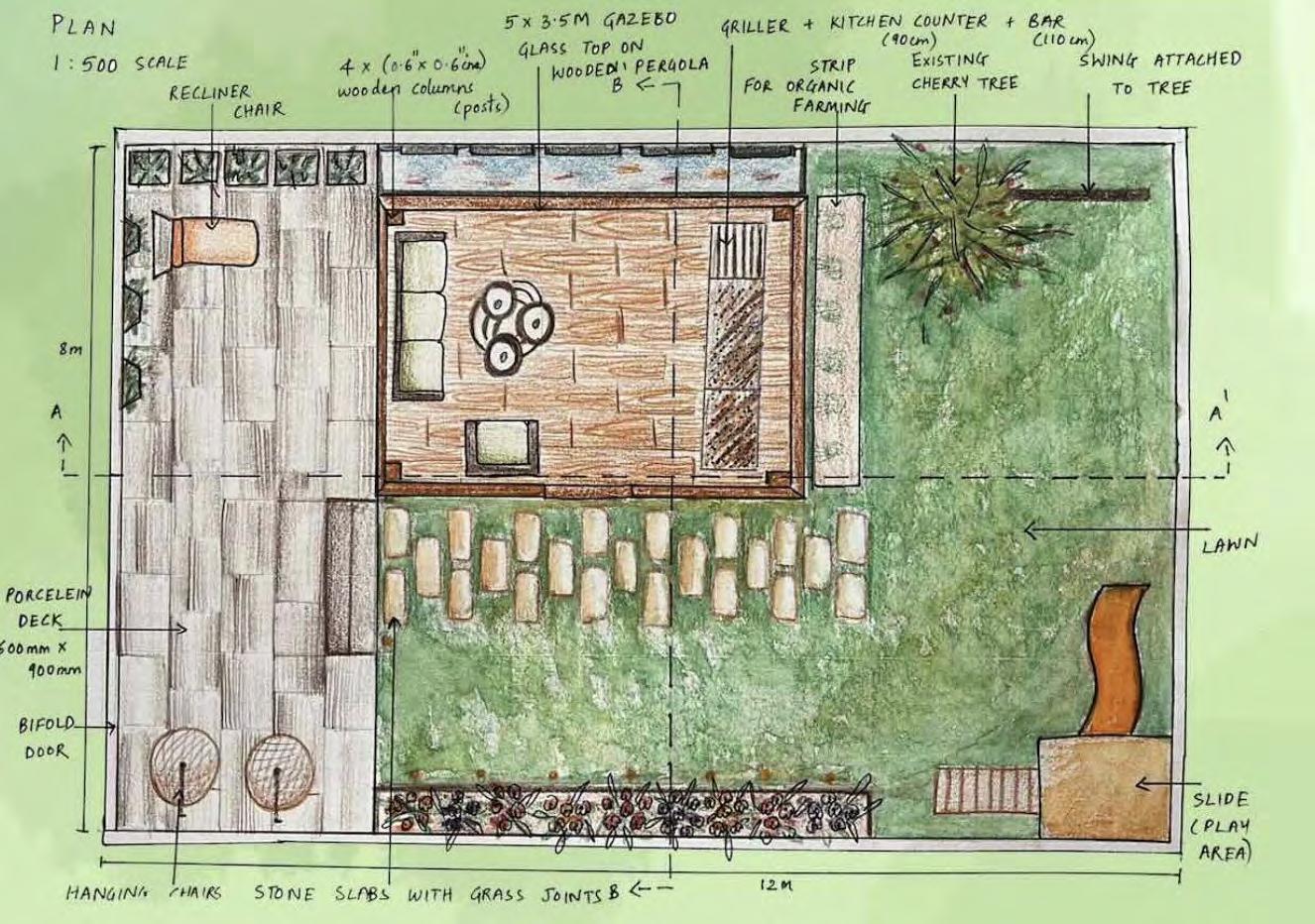 Garden Design proposal to cater to the following demands of the client: -Child-friendly -Modern Aspect -Low Maintenance -Gazebo Area