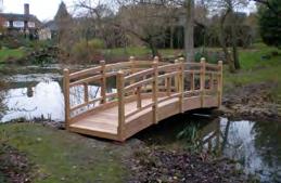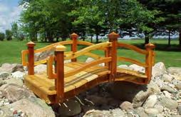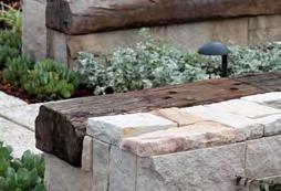 Recycled concrete pavers topped with a larch wood slat for seating Wooden Foot Bridges