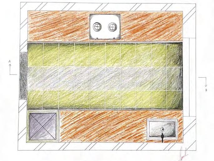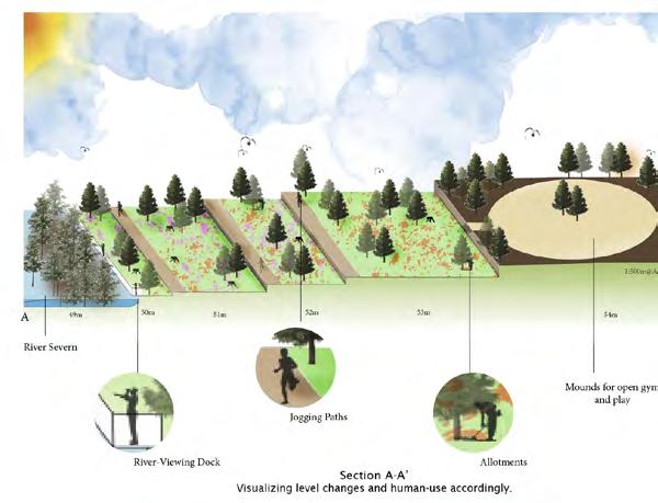 Part ‘A’ shows a section of a proposed intertidal pool with boardwalks running on both the sides. Viewers can spot migratory birds. The base of the pond can be layed with a substrate mixture of sand, gravel, 15% clay and organic matter to achieve the charceteristic of a constructed wetland pond for water purificication and demetalling.