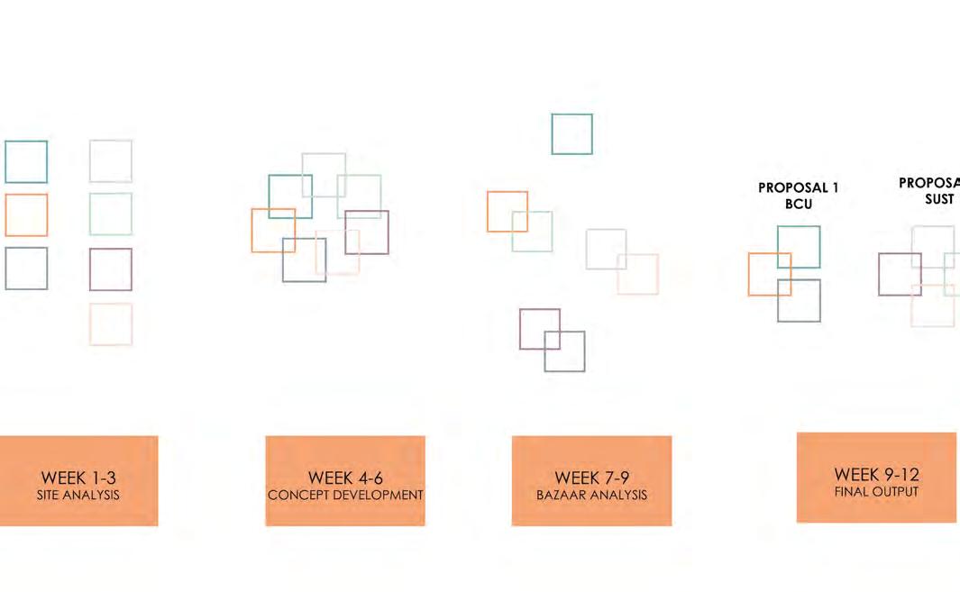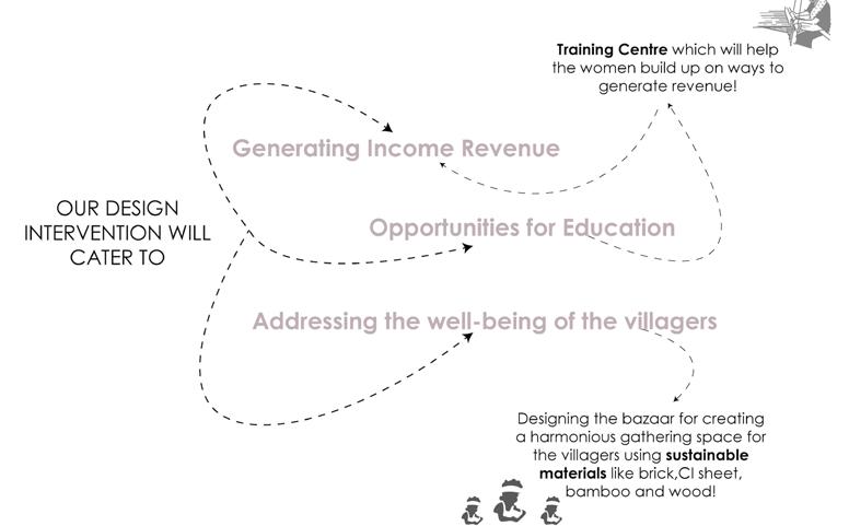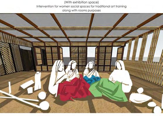 KazirBazaar is a historically significant place that has served eight neighborhoods over the past 70-80 years. It was a lively site not only for shopping but also for communal gatherings on “hoot day”. However, the marketplace became mundane with time. We seek to revive the essence of traditional Bangladeshi bazaars. Our proposed design intervention is characterized mainly by a socio-economic and public well-being approach. The goal of our proposed design intervention will be to enhance the Kazirganj bazaar area specifically, providing greater sustainable places for community gathering and creating a pathway for the women of the village towards recognition by designing for multiple training areas intertwined in the bazaar area for practicing the long lost art of weaving-Nakshikatha, that will provide the villagers a