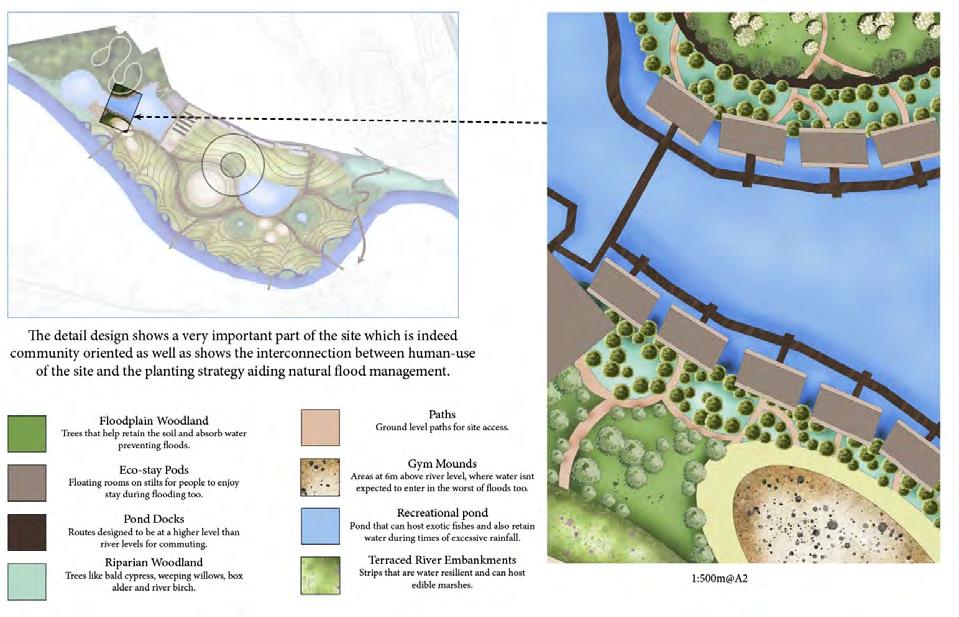 -The site is a floodplain site victimized of flooding. The design brief was to find a solution for the current and future climate change.