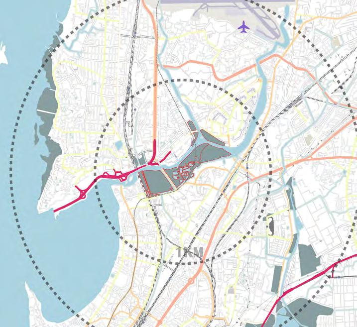 Part ‘C’ shows a section of the proposed connection of the existing mithi river to the proposed coastal riverfront park. It shows the terraced riverfront and the floating docks designed for fishing.