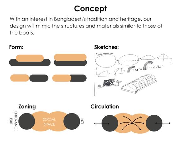 From my social economic analysis I decided to look into the opportunity that the surrounding area is well linked by canal/rivers. Bangladesh boats offer inland water transportation. Boats and rivers have played an important role in Bengali culture, inspiring generations and shaping the art of boatmaking.