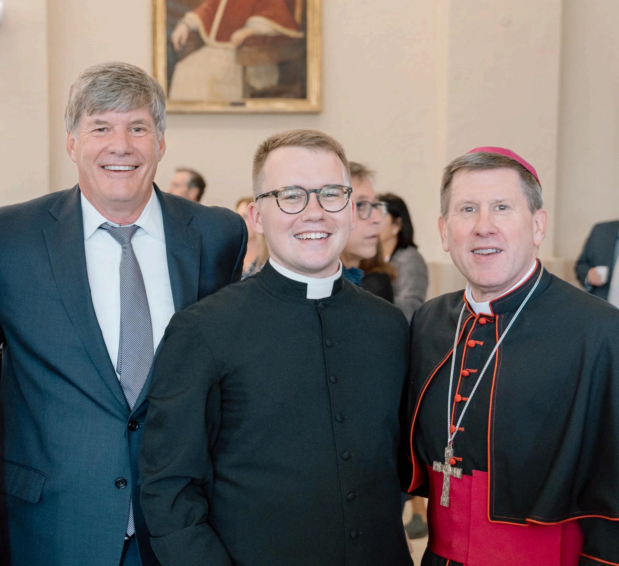 Join us this fall for one of our 100 Masses on campus or around Nashville honoring Father Ryan. Congratulations to Father Christian Hamrick ’17 on his recent ordination into the priesthood, pictured here with Paul Davis ’81, Father Ryan President, and Bishop J. Mark Spalding.