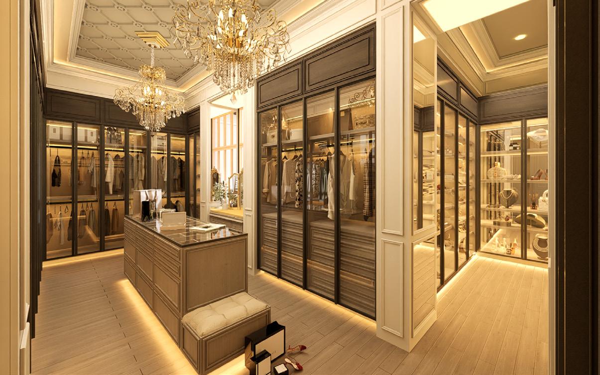 Diseño de mobiliario (set de clósets empotrados e isla) y desarrollo de concepto de vestidor para mujer. La priorización del diseño se basó en la funcionalidad y estética, siendo necesaria tener ambas en misma cantidad para maximizar y aprovechar la mayor parte del espacio posible dando la ilusión de que los muebles se encuentran empotrados, simulando una tienda departamental a través de criterios de modulación.