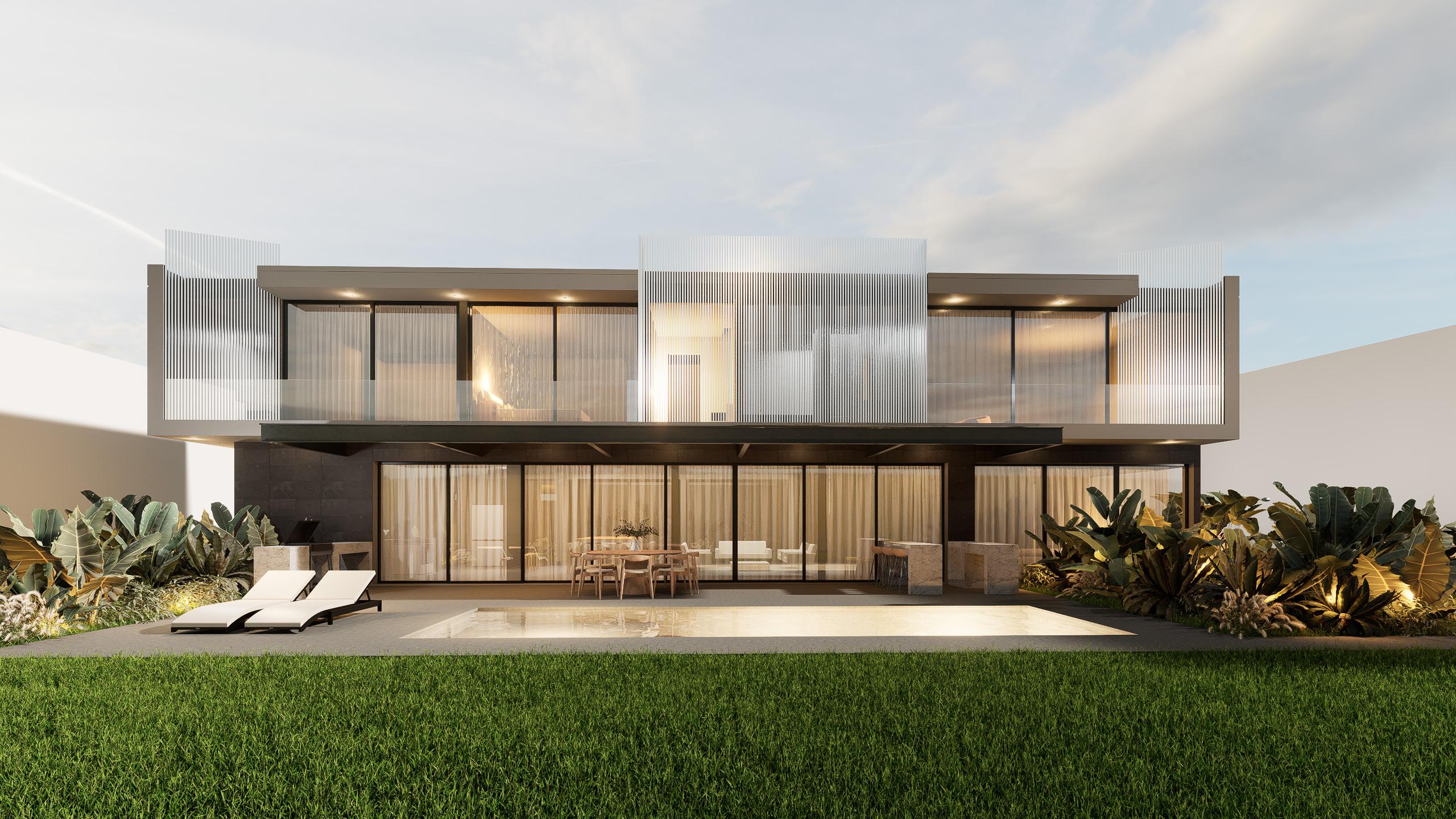 Proyecto de vivienda residencial de dos plantas, en donde se priorizan las áreas sociales en un sólo núcleo con vista favorable hacia los cuerpos de agua naturales (canales) existentes en el fraccionamiento.