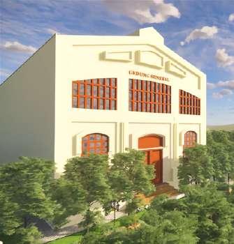 Design and construct a facility that fosters a dynamic creative ecosystem, facilitating economic activity while concurrently generating innovative spaces for collaborative endeavors