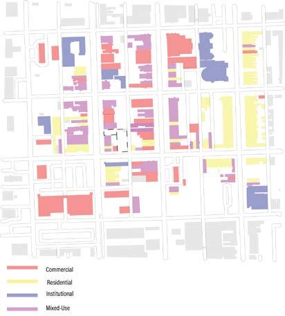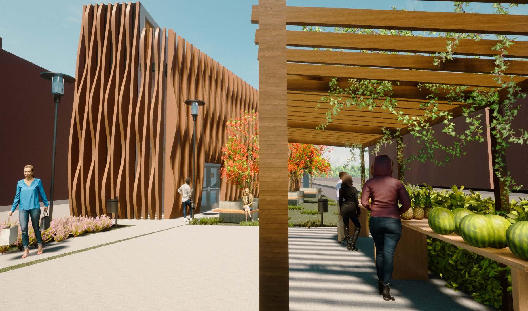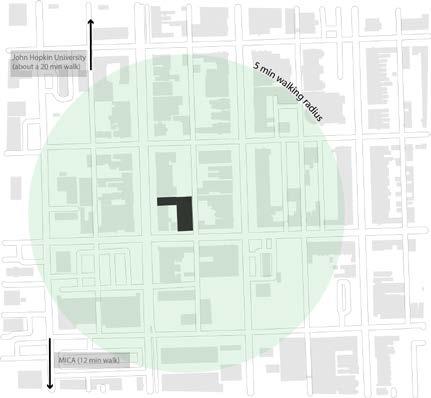 The space will be separated into a mixed-use building with a space to grab a meal in the restaurant above and grab local market favorites below. This farm to table space will have an abundance of fresh produce for the restaurant and farmers market. The farmers market will also hold a space for local artists and vendors to gain revenue for their brand, with indoor or outdoor spaces. This will be a space for all ages to come together in a neighborhood setting to support their fellow neighbors of Old Goucher. This space will also be a great space for college students to grab fresh food and study in before or after class. Food stalls will provide variety to the users by giving them many options for their preferences.