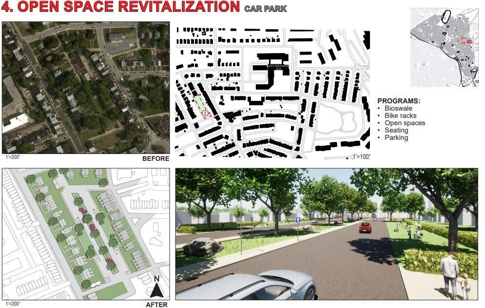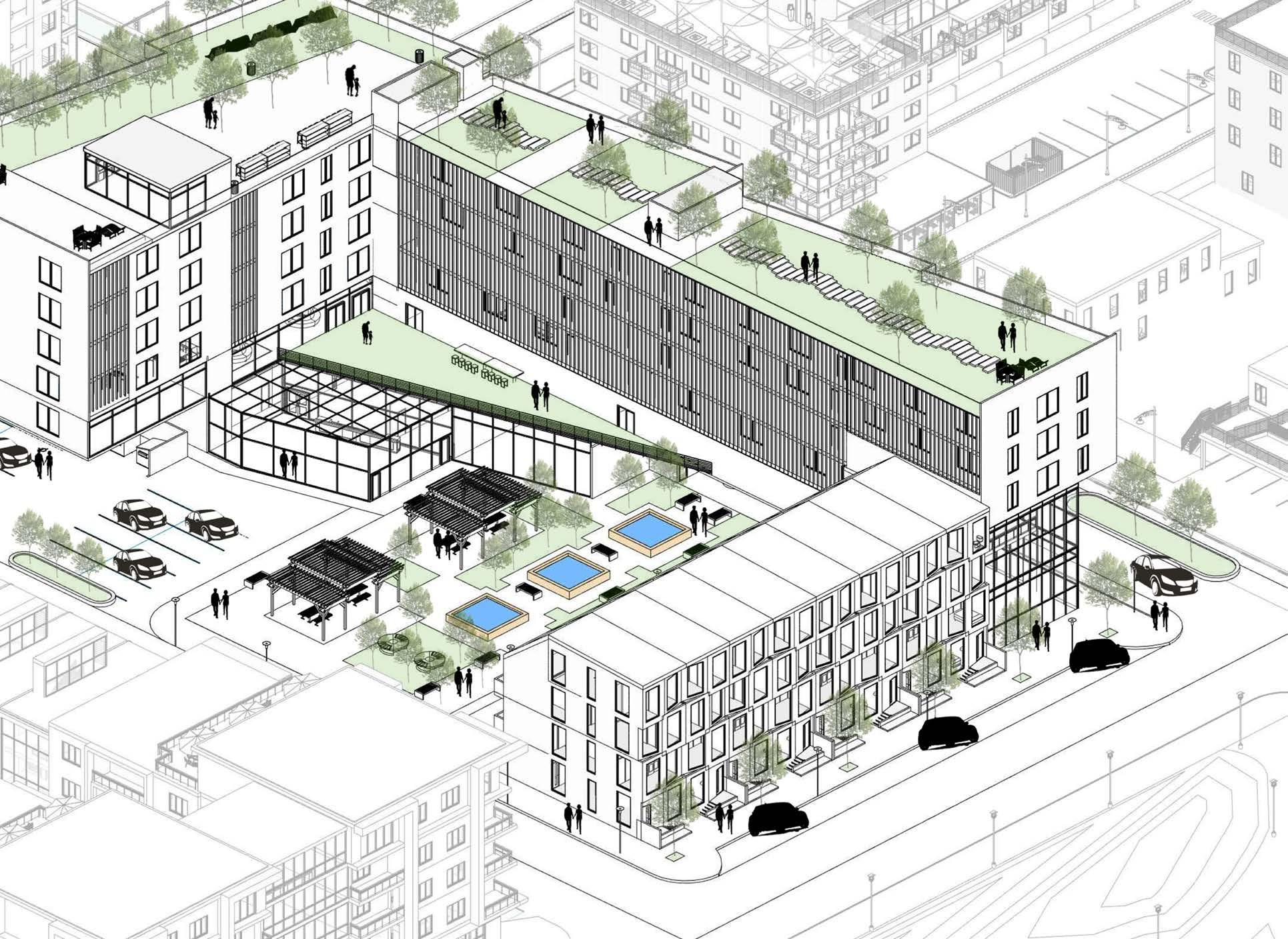 In this project we completed our city block and developed a hybrid housing typology for families with young children and young professionals. The group came together on a virtual platform to collaborate on a block that consisted of town-homes, an apartment complex and retail space on a fictitious site. Our block included a park for residents within out block. We developed our lot over a series of 3 design proposals to create this final product proposal. The design goals includes privacy for the residents located in this fictitious city, views to the park with local amenities.
