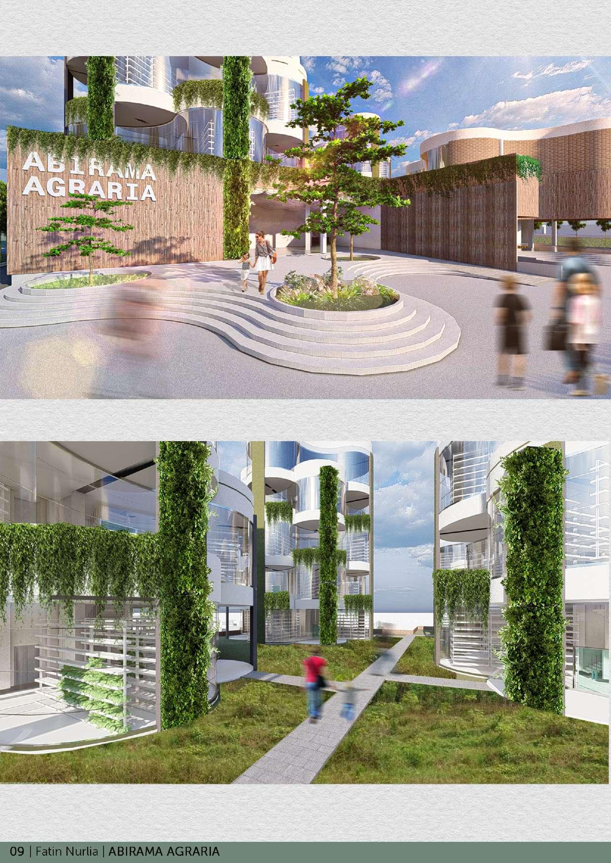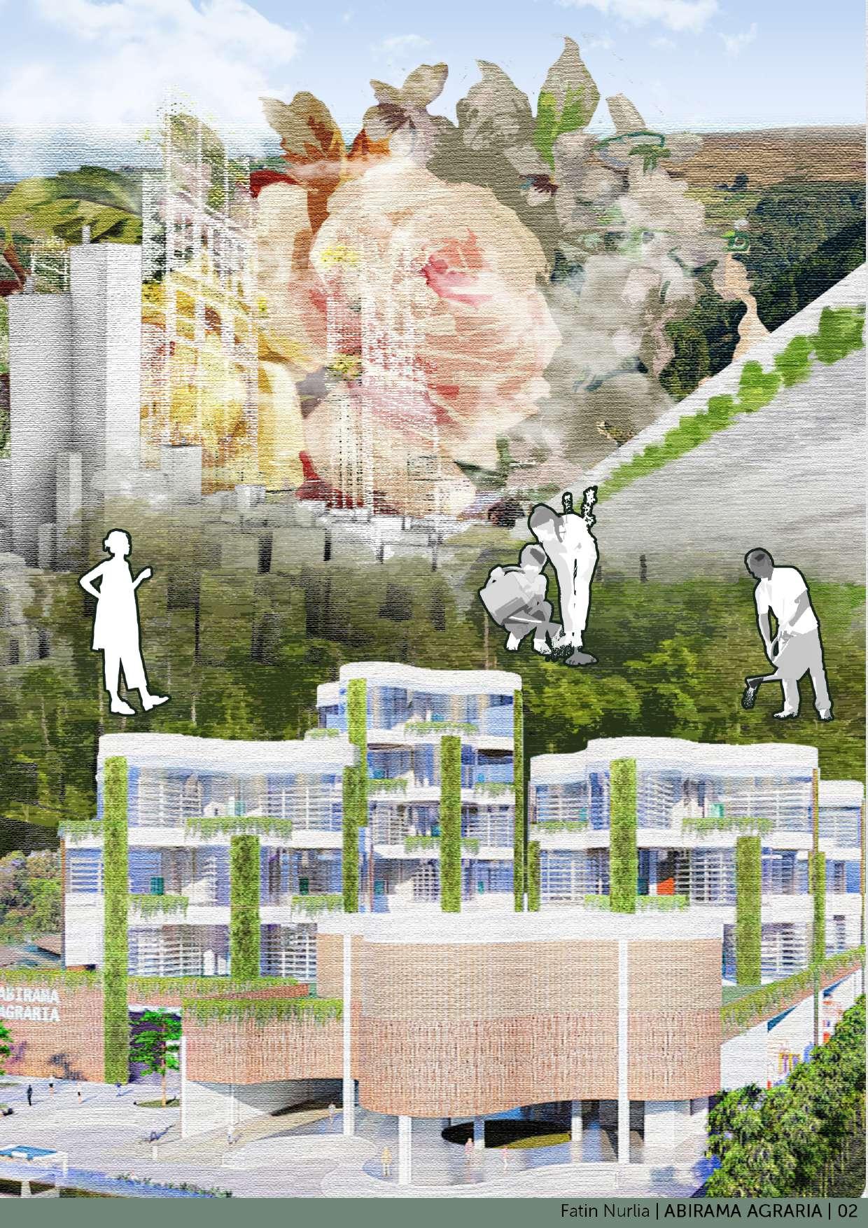 Kawasan Kembangan memiliki sejarah sebagai kawasan yang mayoritas mata pencaharian masyarakatnya adalah sebagai petani. Fenomena yang terjadi saat ini adalah perkembangan kawasan Kembangan menyebabkan isu krisis lahan pertanian. Konsep desain arsitektur mengutamakan ketahanan proses produksi pertanian perkotaan di dalamnya. Program ruang dalam bangunan memasukan prinsip supply chain untuk memaksimalkan fungsi bangunan selain sebagai tempat produksi pertanian juga sebagai tempat pengolahan dan distribusi hasil panen. Pertanian perkotaan vertikal juga dapat dijadikan wadah edukasi generasi z dan generasi alpha melalui program aktivitas edukasi produksi pertanian. Hasil eksplorasi geometri bentuk menghasilkan bentuk massa lengkung disetiap sisi sehingga menghasilkan bentuk gubahan massa yang sangat kontras terhadap bangunan sekitar tapak.