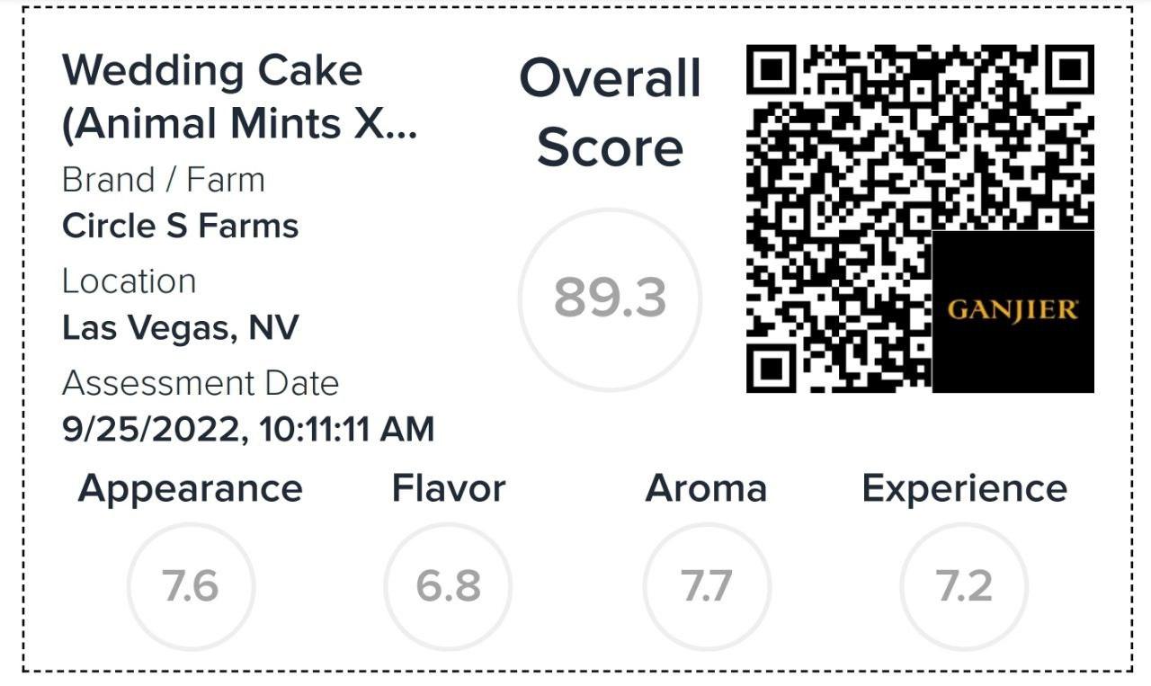 For this sample I had Wedding Cake by Circle S Farms (CSFNV.com). This eighth came in a plastic jar with no frill packaging, topped off with the black label and silver Circle S Farms brand name. Harvested in May 2022 and packaged only a few weeks ago on