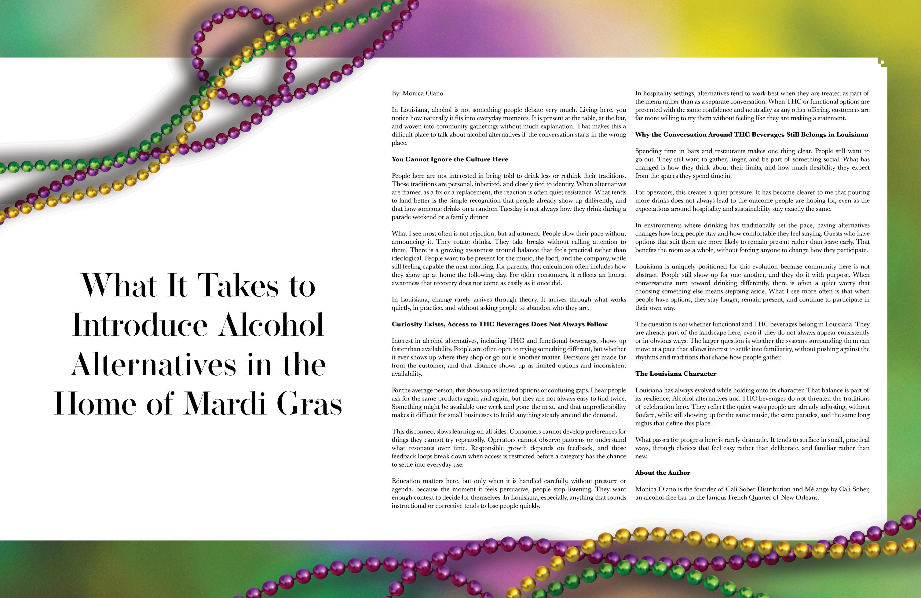 Pg 28: what it takes to introduce alcohol alternatives in the home of mardi gras by monica olano