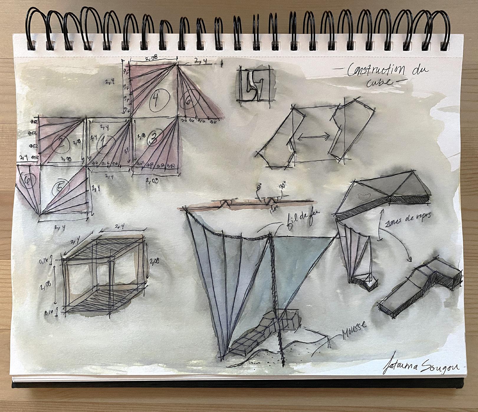 Sillage conception d’un espace à partir d’une base cubique, où des mouvements sont intégrés pour modeler l’architecture de l’espace.