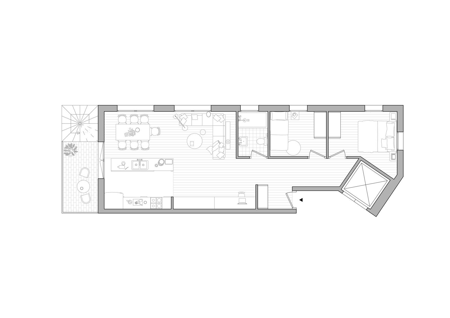récit suspendu Le projet de duplex avec atelier d’artiste, situé dans le Mile End, explore l’interaction entre le site, les matériaux et la fonction des espaces.