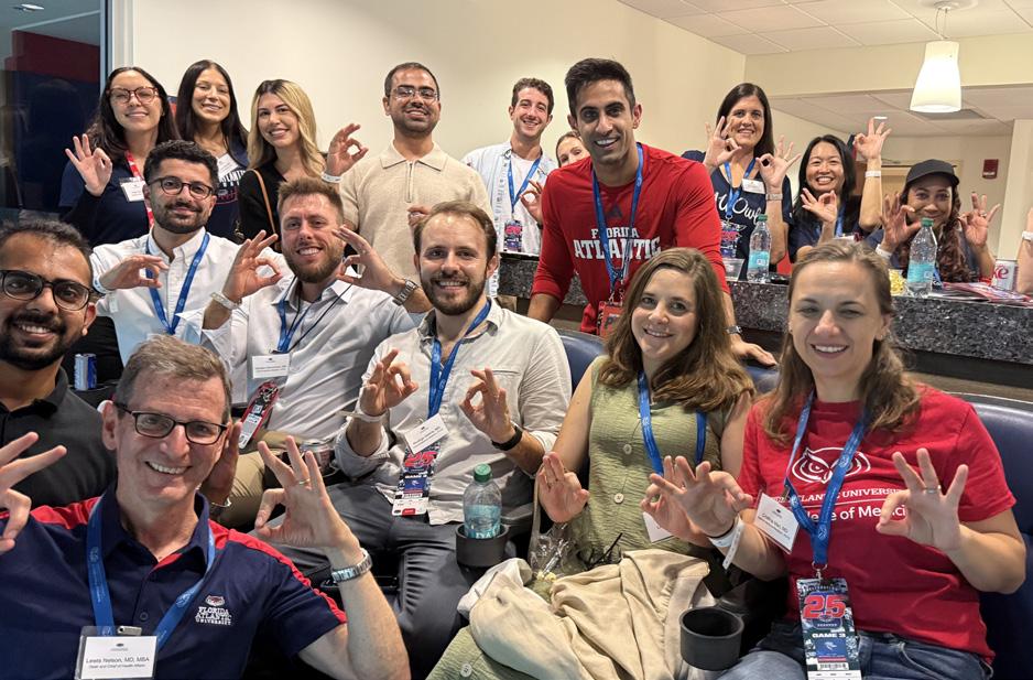 The numbers tell a compelling story of impact and excellence. Every graduating medical student secured a residency position, with more than one-third choosing to serve Florida communities and address our state’s critical physician shortage. Our research enterprise reached $28 million in active funding, generating 282 scholarly works including 121 peer-reviewed publications that appeared in premier journals like JAMA and the American Journal of Medicine. The impact of this research reached global audiences through coverage in major media outlets including the New York Times, FOX News, and U.S. News & World Report. Through Florida Atlantic Medical Group, we integrated education and patient care by delivering more than 8,100 patient visits while coordinating nearly 5,000 specialty referrals and training the next generation of physicians.