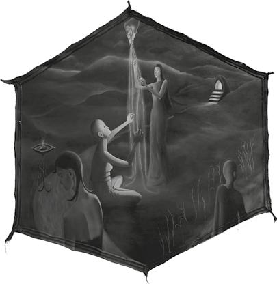 a složitá, až působí dojmem magickému chaosu. Božské propojené vědomí. A člověk ve své vzpírající se, sebestředné individuálnosti má tak nanejvýš potenciál ji protnout. Přesto však je to kolmice propojující podsvětí s vesmírem.