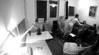 Všem bytovým akcím přítomný kus krajky posloužil k zahalení mého obličeje při čtení Vladimírovy básně a byl stržen při poslední strofě.