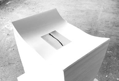 Projekt Behind the Paper ukazuje kritický pohled grafické designérky na (v souč asnosti nejistý) ‚off-line nosič‘ vizuální komunikace – papír. Prostřednictvím instalace a doprovodné tiskoviny se snaží zprostředkovat přímý kontakt s m ateriálem, nabídnout návod na různé způsoby nazírání a vytvořit z papíru figuru na pozadí. Skrze grafické nástroje jako například vizuální esej či spekulativní kresba se pokouší narušit mýty a stereotypy formující pohled na arch papíru v d obě globalizace, jež pod maskou samozřejmosti žene naší společnost k o dcizení a nevědomosti. Otřást lhostejností nad věcmi, které nás obklopují – lhostejností, s jakou (ne)hledíme například na papír – může být první krůček k nekončícím otázkám „jak to funguje“.