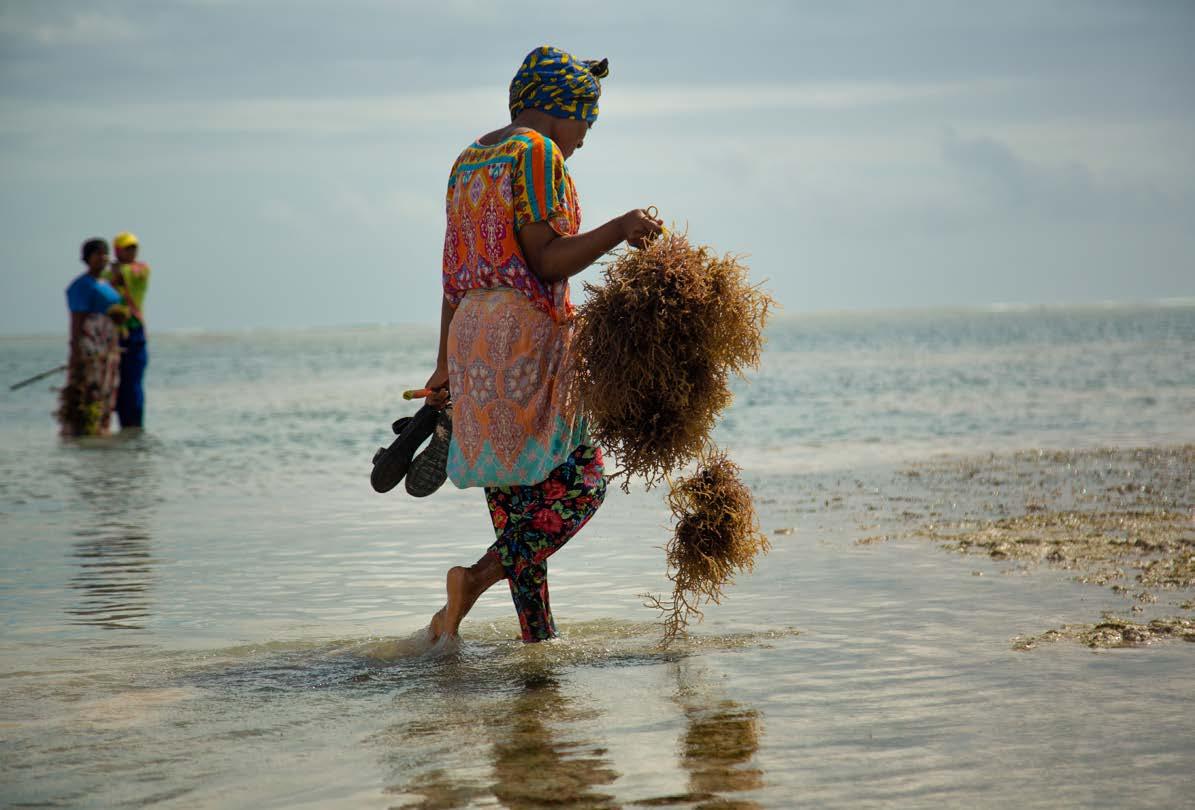 Récolte d’algues à Zanzibar en octobre 2021 grâce au projet de création d’entreprises durables pour les jeunes financé par Norad