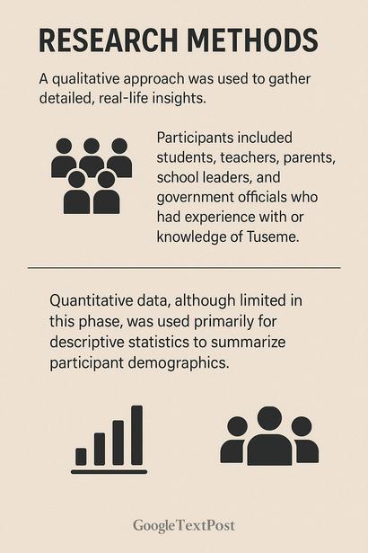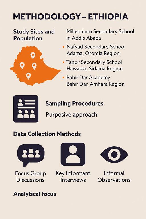 This study focused on understanding how the Tuseme model is being used in four secondary schools across Ethiopia: Millennium Secondary School in Addis Ababa, Nafyad Secondary School in Adama (Oromia), Tabor Secondary School in Hawassa (Sidama), and Bahir Dar Academy in Bahir Dar (Amhara) These schools provided a diverse representation of Ethiopia's educational landscape, ranging from large government schools to private institutions, urban to regional schools. The research team engaged with teachers, students, and administrators to assess the impact of Tuseme and gather data on its implementation, challenges, and successes