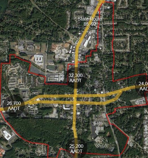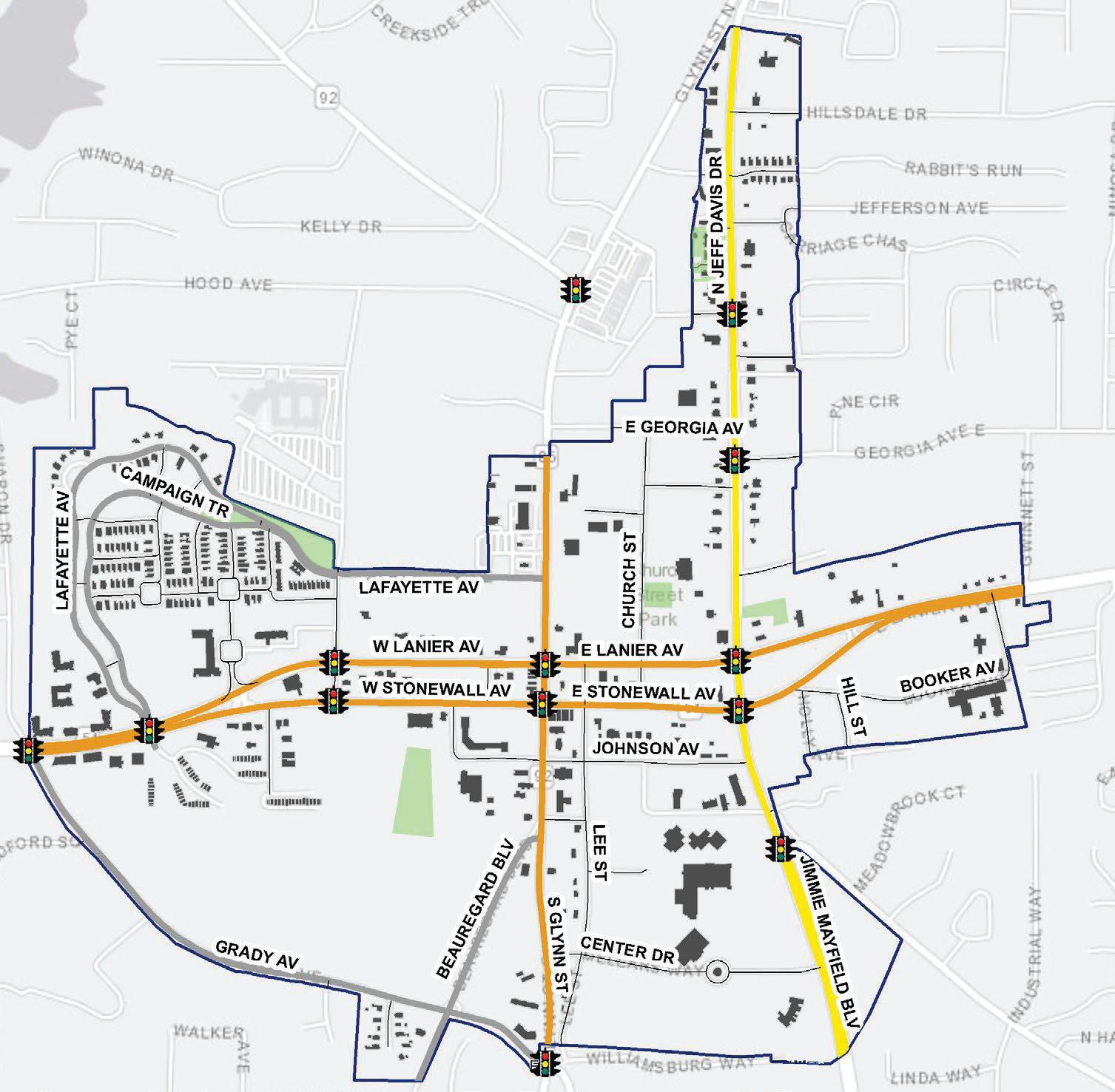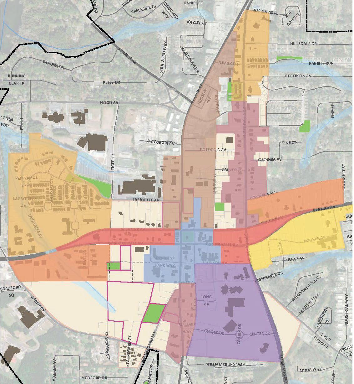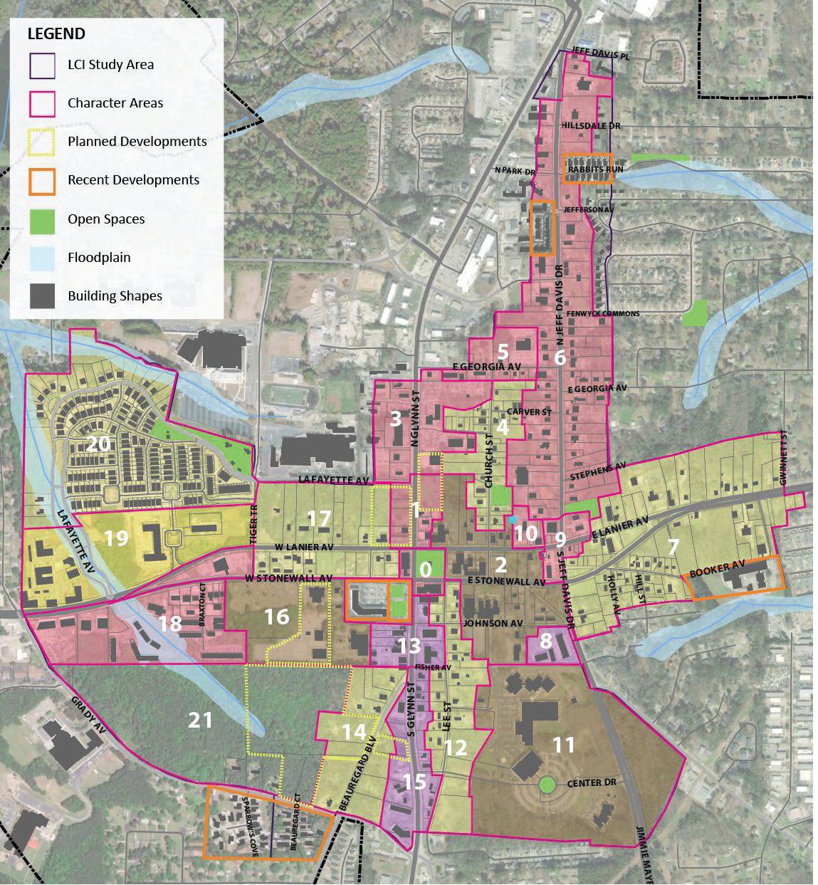 The Atlanta Regional Commission’s Livable Centers Initiative (LCI) is a grant program that incentivizes local jurisdictions to re-envision their communities as vibrant, walkable places that offer increased mobility options, encourage healthy lifestyles and provide improved access to jobs and services. The study area encompasses about 900 acres and addresses the Main Street area (sometimes referred to as the historic district) and includes downtown, and areas to Lafayette Avenue to the west, Gwinnett Street to the east, Georgia Avenue and North Jeff Davis Drive to the north and Grady Avenue and just north of Williamsburg Way to the south.