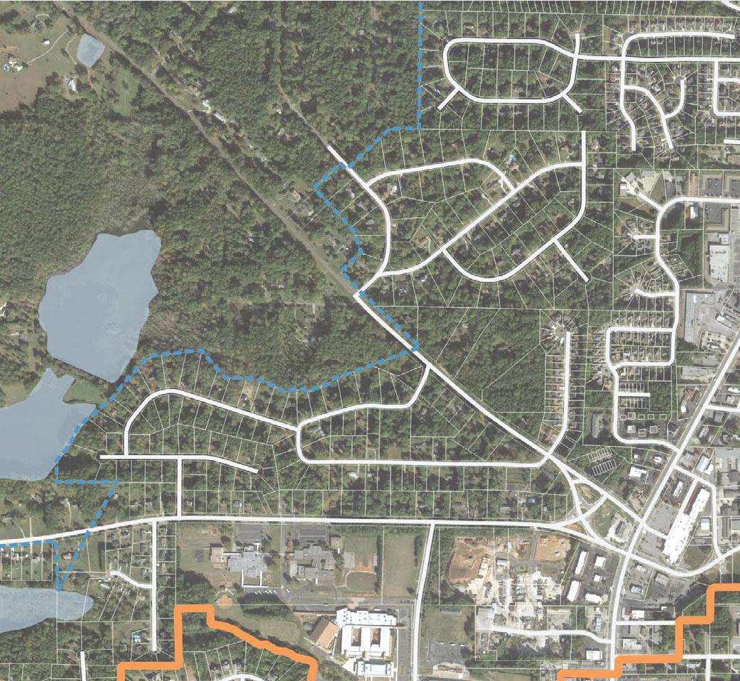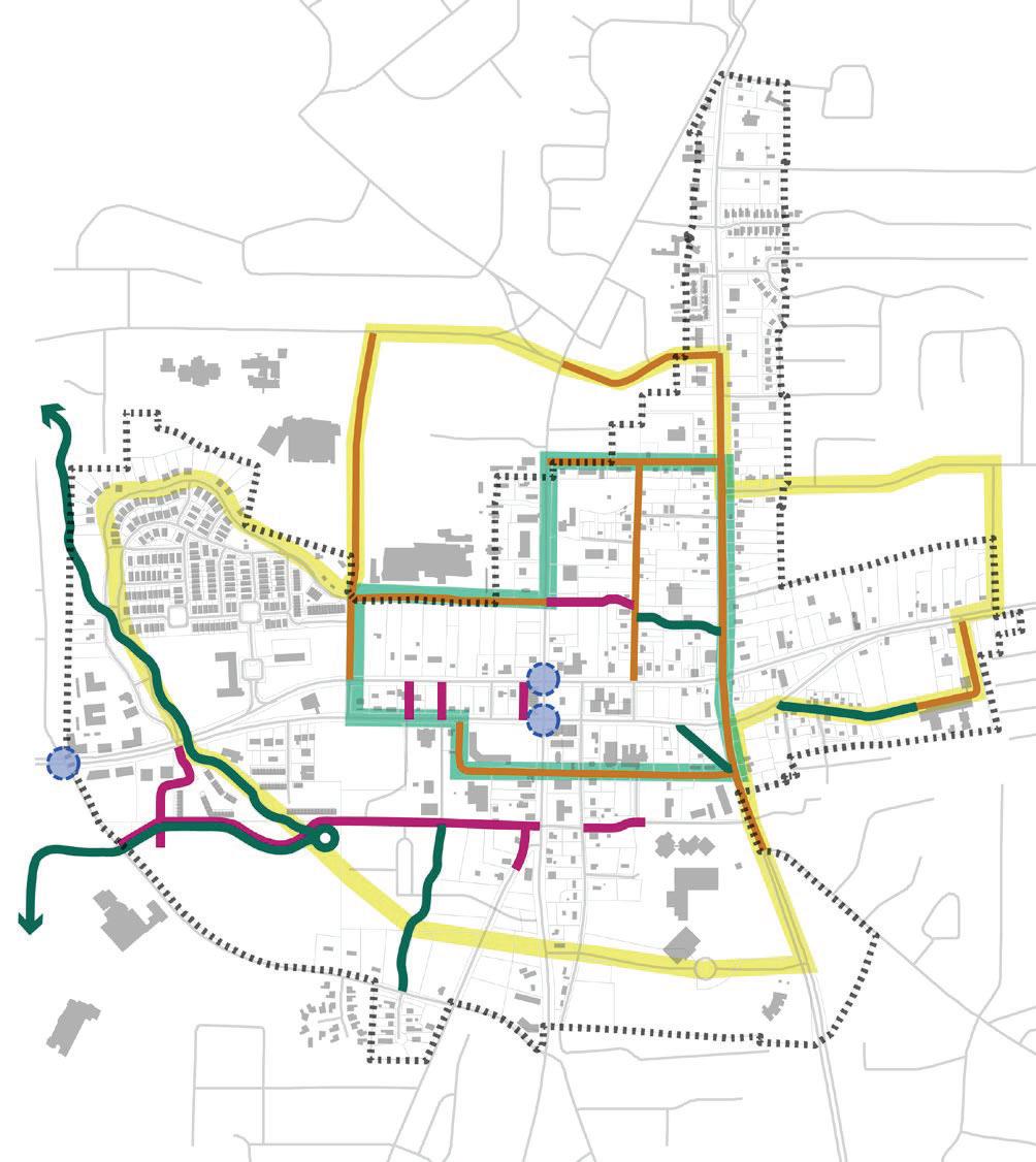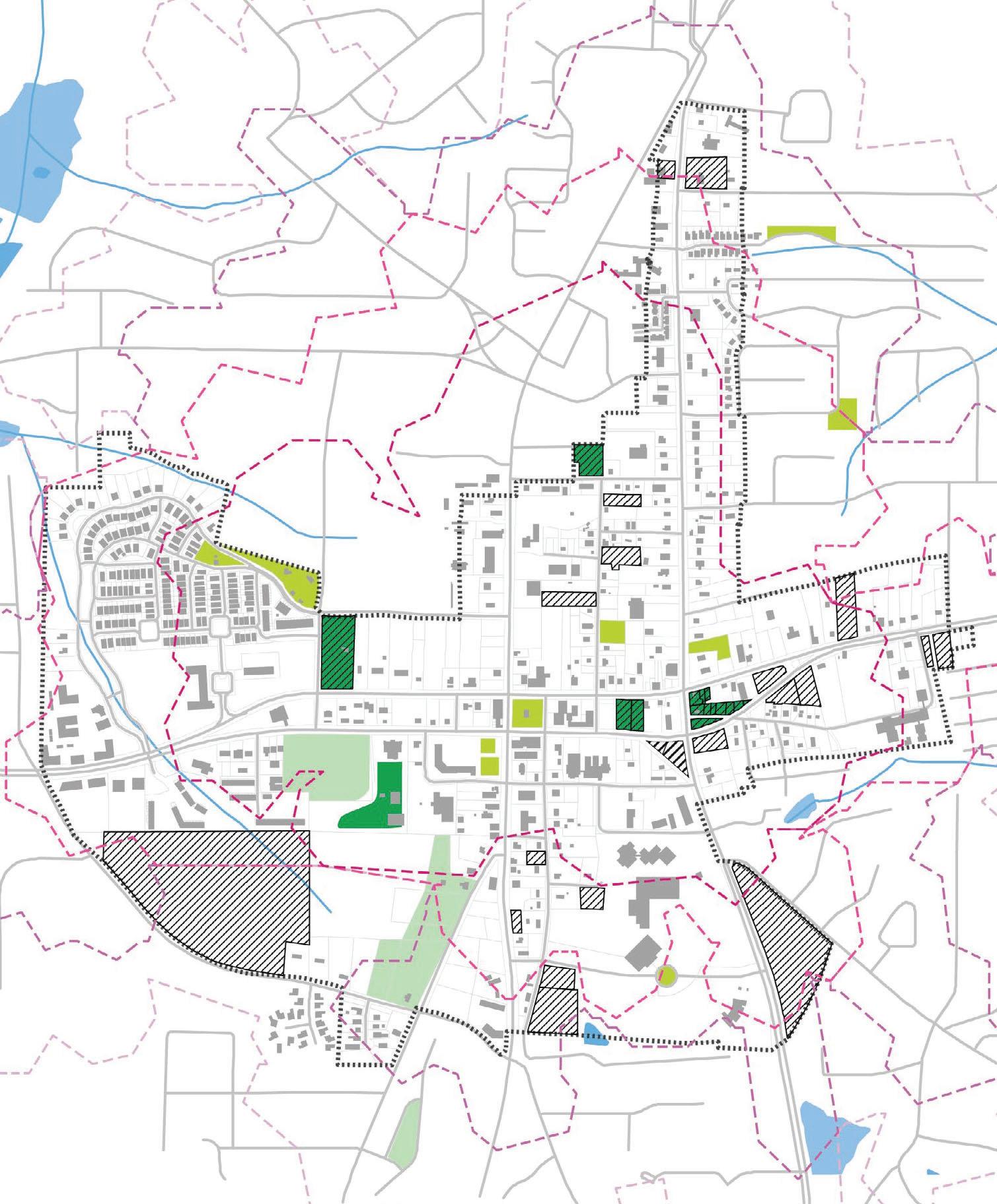 The 2002 LCI study identified opportunities for public space, new development, and traffic calming mobility interventions that would be conducive to pedestrian connectivity, community events, and preservation of green space.
