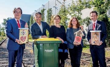 Lebensraum, Bewusstseinsbildung und Kunst: Am SaubermacherStandort Puchstraße ist seit kurzem am Murufer ein neuer Le bensraum für Tiere entstanden. In seiner Verantwortung errichte te der Betrieb eine rund 1.000 m2 große Lärmschutzwand samt Begrünung. Bunte Vogel- und Nistkästen, die von den Kindern der Volksschule Schönau gestaltet wurden, bieten ein Zuhause für In sekten, Vögel und Co. Nach knapp einem halben Jahr Bauzeit wur de die Lärm- und Sichtschutzwand am 22. September im Beisein von Bgm.in Elke Kahr, Vize-Bgm.in Judith Schwentner und Stadt rat Kurt Hohensinner feierlich eingeweiht. Ein Malwettbewerb mit Grazer Volksschulen soll Kinder anregen, sich mit Abfalltrennung und Recycling auseinanderzusetzen.