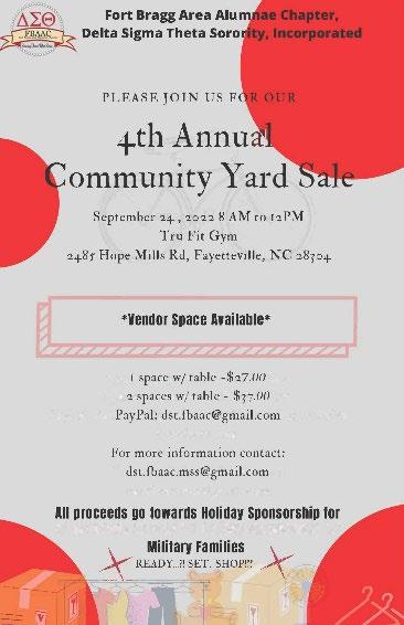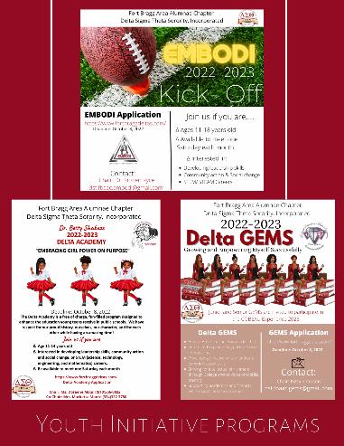 We are excited to present another double edition of The FORTitude, which chronicles the achievements of the Fort Bragg Area Alumnae Chapter from July through December, 2022. Chapter members and committee chairs are welcome to provide content and/or commentary (i.e., picture collages, upcoming events, personal accomplishments, birthdays, Deltaversaries, etc.). Verbiage should be no longer that 300 words. We reserve the right to edit your submission, if necessary. To avoid stretched/distorted images, please submit pictures in the original size. We will make the necessary adjustments. To follow is the schedule for submission of content: