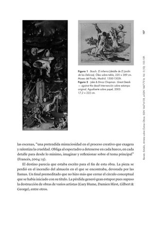 Figura 1 ∙ Bosch. El infierno (detalle de El Jardín de las Delicias). Óleo sobre tabla, 220 × 389 cm. Museo del Prado, Madrid. 1500-1505h. Figura 2 ∙ Jake & Dinos Chapman. Great Deeds — against the dead! Intervención sobre estampa original. Aguafuerte sobre papel, 2003. 17,2 × 222 cm.