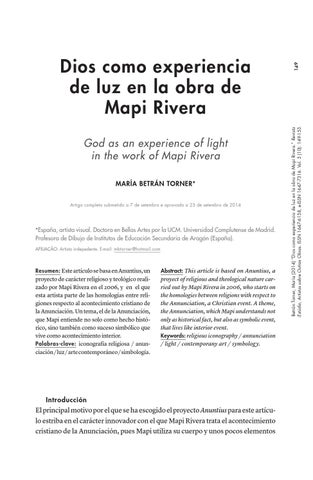 God as an experience of light in the work of Mapi Rivera María Betrán Torner* Artigo completo submetido a 7 de setembro e aprovado a 23 de setembro de 2014