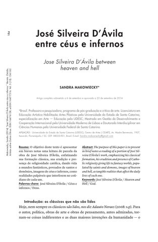154 Makowiecky, Sandra (2014) “José Silveira D’Ávila entre céus e infernos.” Revista :Estúdio, Artistas sobre Outras Obras. ISSN 1647-6158, e-ISSN 1647-7316. Vol. 5 (10): 154-162.