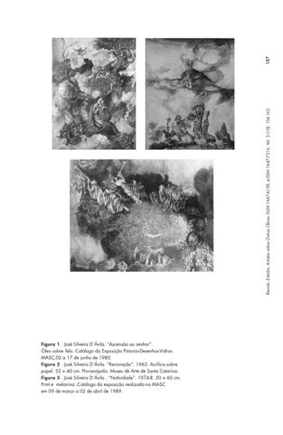 Figura 1 ∙ José Silveira D´Ávila. “Ascensão ao senhor”. Óleo sobre Tela. Catálogo da Exposição Pinturas-Desenhos-Vidros. MASC,02 a 17 de junho de 1980. Figura 2 ∙ José Silveira D´Ávila. “Renovação”. 1963. Acrílica sobre papel. 32 × 40 cm. Florianópolis. Museu de Arte de Santa Catarina. Figura 3 ∙ José Silveira D´Ávila . “Natividade”. 1974-8. 50 × 60 cm. Print e melanina. Catálogo da exposição realizada no MASC em 09 de março a 02 de abril de 1989.