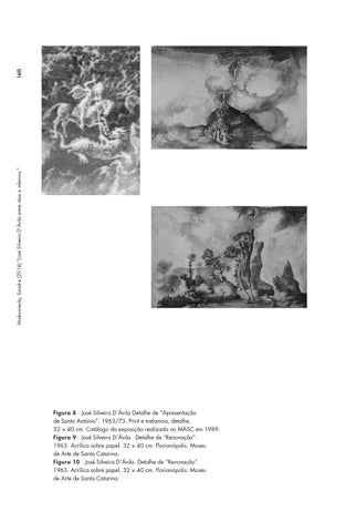 Figura 8 ∙ José Silveira D´Ávila Detalhe de “Apresentação de Santo Antônio”. 1963/73. Print e melanina, detalhe, 32 × 40 cm. Catálogo da exposição realizada no MASC em 1989. Figura 9 ∙ José Silveira D´Ávila. Detalhe de “Renovação”. 1963. Acrílica sobre papel. 32 × 40 cm. Florianópolis. Museu de Arte de Santa Catarina. Figura 10 ∙ José Silveira D´Ávila. Detalhe de “Renovação”. 1963. Acrílica sobre papel. 32 × 40 cm. Florianópolis. Museu de Arte de Santa Catarina.