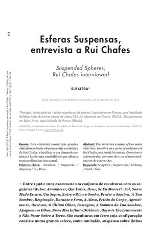 Esferas Suspensas, entrevista a Rui Chafes Suspended Spheres, Rui Chafes interviewed Rui Serra* Artigo submetido a 5 de Setembro e aprovado a 23 de setembro de 2014