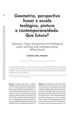 Geometria, perspectiva linear e escala teológica, pintura e contemporaneidade. Que futuro? Geometry, linear perspective and theological scale, painting and contemporaneity. What future? António Oriol Trindade* Artigo submetido a 8 de agosto e aprovado a 23 de setembro de 2014