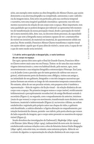 Em 1920, apenas dois anos após o final da Grande Guerra, Francisco Afonso Chaves esteve mais uma vez em França. Tratou-se de uma das suas muitas viagens internacionais e, como era habitual desde, pelo menos, 1901, usou recorrentemente a sua máquina fotográfica estereoscópica Vérascope. Em Laon, a 12 de Junho (com a precisão que ele tanto gostava de cultivar nos seus registos), relativamente perto da fronteira com a Bélgica, visitou um amigo e, na intimidade do seu gabinete, fotografou-o em três imagens sucessivas que juntas formam um retrato ao longo de três momentos temporais consecutivos. No entanto, além de ser um peculiar retrato, esta pequena série é também a representação – feita de registo e de ficção visual – da relação dinâmica de um corpo com o espaço. Na primeira imagem vemos o corpo imóvel, veridicamente tridimensional e perceptivamente reconhecível, do amigo Berthrant sentado à secretária (Figura 1); na segunda, com o enquadramento da anterior, intuímos (mais do que vemos) o corpo em movimento, transformado num dinâmico rasto luminoso, imaterial e indeterminado (Figura 2); na terceira e última, na ordem estabelecida e registada pelo próprio autor nas chapas de vidro, o gabinete está desabitado, a cadeira afastada e a ligeira alteração no enquadramento, por rotação horizontal da câmara, permite-nos inferir, pela porta aberta que vemos do lado esquerdo da imagem, que o corpo antes presente se ausentou do espaço visível (Figura 3). Sendo devedora das investigações de Eadweard J. Muybridge (1830-1904) e de Étienne-Jules Marey (1830-1904), indissociável da nova arte do cinema e estabelecendo curiosas relações com a obra do futurista Anton Giulio Bragaglia (1890-1960), esta série tem, no entanto, uma natureza própria. Além de ser o retrato de alguém e a representação da relação dinâmica de um corpo com