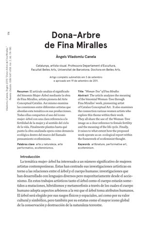 Dona-Arbre de Fina Miralles Àngels Viladomiu Canela Catalunya, artista visual. Professora Departament d’Escultura, Facultat Belles Arts, Universitat de Barcelona. Doctora en Belles Arts. Artigo completo submetido em 3 de setembro e aprovado em 19 de setembro de 2011.