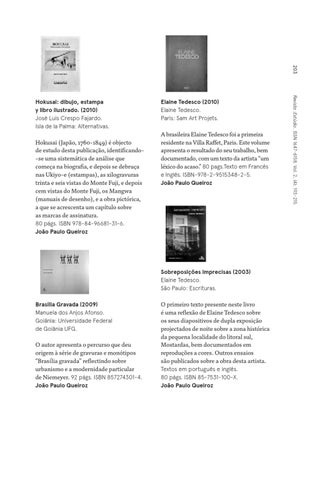 Sobreposições imprecisas (2003) Elaine Tedesco. São Paulo: Escrituras. Brasília Gravada (2009) Manuela dos Anjos Afonso. Goiânia: Universidade Federal de Goiânia UFG.