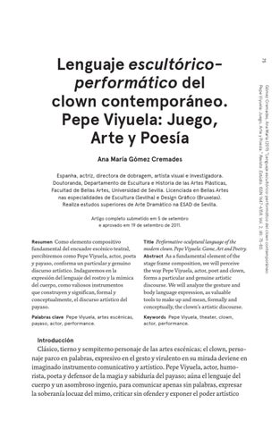Lenguaje escultóricoperformático del clown contemporáneo. Pepe Viyuela: Juego, Arte y Poesía