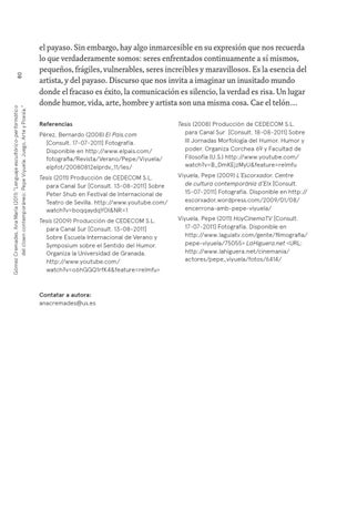 80 Gómez Cremades, Ana María (2011) “Lenguaje escultórico-performático del clown contemporáneo: Pepe Viyuela: Juego, Arte y Poesía.”