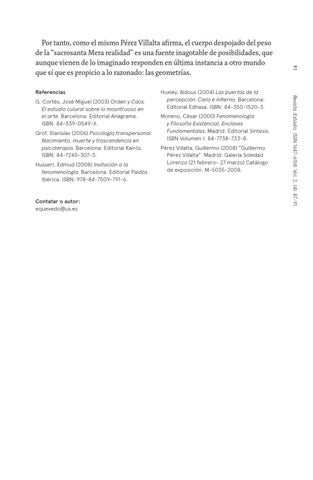 Huxley, Aldous (2004) Las puertas de la percepción. Cielo e infierno. Barcelona: Editorial Edhasa. ISBN: 84-350-1520-3. Moreno, César (2000) Fenomenología y Filosofía Existencial. Enclaves Fundamentales. Madrid: Editorial Sintesis. ISBN Volumen I: 84-7738-733-8. Pérez Villalta, Guillermo (2008) “Guillermo Pérez Villalta”. Madrid: Galería Soledad Lorenzo (21 febrero- 27 marzo).Catálogo de exposición. M-5035-2008.