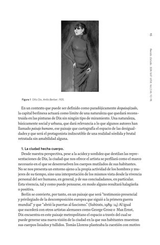 En un contexto que puede ser definido como paradójicamente despaisajizado, la capital berlinesa actuará como límite de una naturaleza que quedará reconstruida en las pinturas de Dix sin ningún tipo de miramiento. Una naturaleza, básicamente social y urbana, que dará relevancia a lo que algunos autores han llamado paisaje humano, ese paisaje que cartografía el espacio de las desigualdades y que será el protagonista indiscutible de una realidad sórdida y brutal retratada sin amabilidad alguna. 1. La ciudad hecha cuerpo.