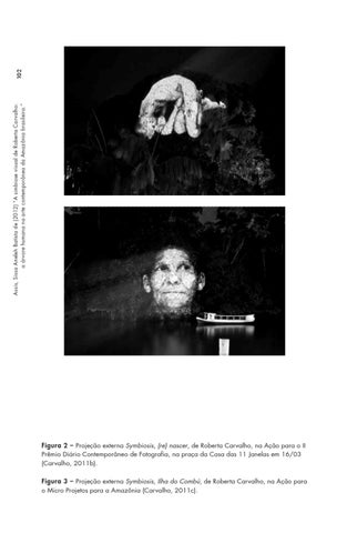 Figura 2 – Projeção externa Symbiosis, (re) nascer, de Roberta Carvalho, na Ação para o II Prêmio Diário Contemporâneo de Fotografia, na praça da Casa das 11 Janelas em 16/03 (Carvalho, 2011b). Figura 3 – Projeção externa Symbiosis, Ilha do Combú, de Roberta Carvalho, na Ação para o Micro Projetos para a Amazônia (Carvalho, 2011c).
