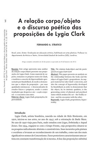 A relação corpo/objeto e o discurso poético das proposições de Lygia Clark FERNANDO A. STRATICO
