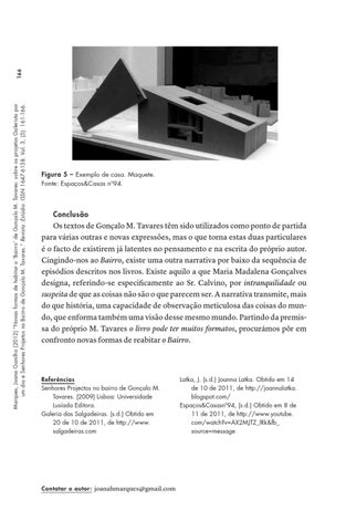 166 Marques, Joana Ganilho (2012) “Novas formas de habitar o ‘Bairro’ de Gonçalo M. Tavares: sobre os projetos Galerista por um dia e Senhores Projetos no Bairro de Gonçalo M. Tavares.” Revista :Estúdio. ISSN 1647-6158. Vol. 3, (5): 161-166.