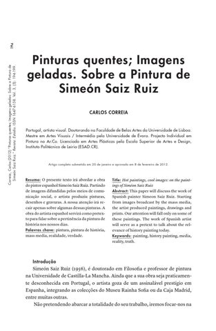 194 Correia, Carlos (2012) “Pinturas quentes; Imagens geladas: Sobre a Pintura de Simeón Saiz Ruiz.” Revista :Estúdio. ISSN 1647-6158. Vol. 3, (5): 194-199.