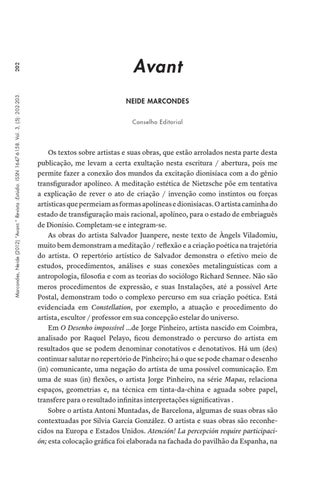202 Marcondes, Neide (2012) “Avant.” Revista :Estúdio. ISSN 1647-6158. Vol. 3, (5): 202-203.