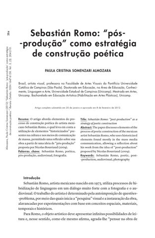 Sebastián Romo: “pós-produção” como estratégia de construção poética PAULA CRISTINA SOMENZARI ALMOZARA