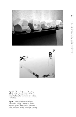 Figura 2 – Salvador Juanpere Berufung (2011). Marbre, inscripció làser. Galeria Alejandro Sales, Barcelona. (Imatge cedida per l’artista). Figura 3 – Salvador Juanpere Sculptor constellation (2010). Sèrie de vuit unitats, impressió gliceé i feltre. Galeria Alejandro Sales, Barcelona. (Imatge cedida per l’artista).